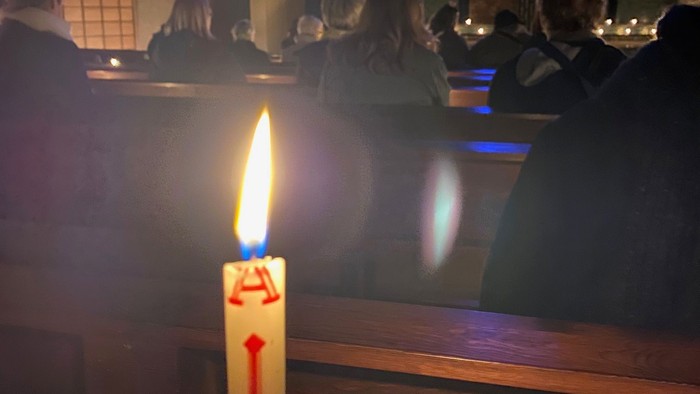Wir betraten die Kirche in vollständiger Dunkelheit. Erst nach und nach wurde das Licht in den Raum getragen: Mehr als 200 Kerzen wurden entzündet – im Kirchenraum ebenso wie in den Händen der Anwesenden. Schrittweise verwandelte sich die Dunkelheit in ein warmes, lebendiges Leuchten und machte die österliche Botschaft vom Sieg des Lichts über die Finsternis auf eindrückliche Weise erfahrbar.