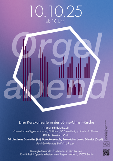 20 Uhr: Irene Schneider, Barockensemble, Projektchor, Jakob Schmidt, Solo-Bachkantate BWV 169 "Gott soll allein mein Herze haben", u.a.